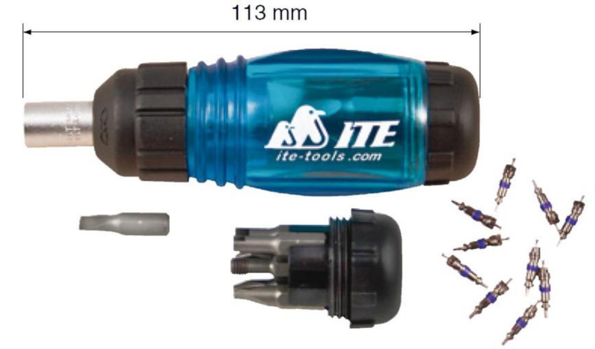 servisní klíč na ventilky ITE MV-3816, 7 různých bitů v jednom průhledném těle