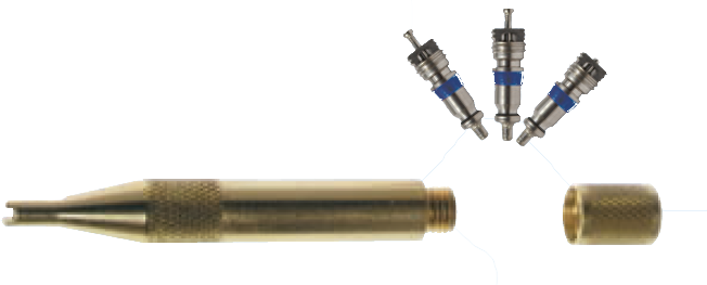 servisní klíč na ventilky ITE MV-3813, s rozšroubovatelným tělem pro uložení až 3 ventilků, v balení 3 ventilky.
